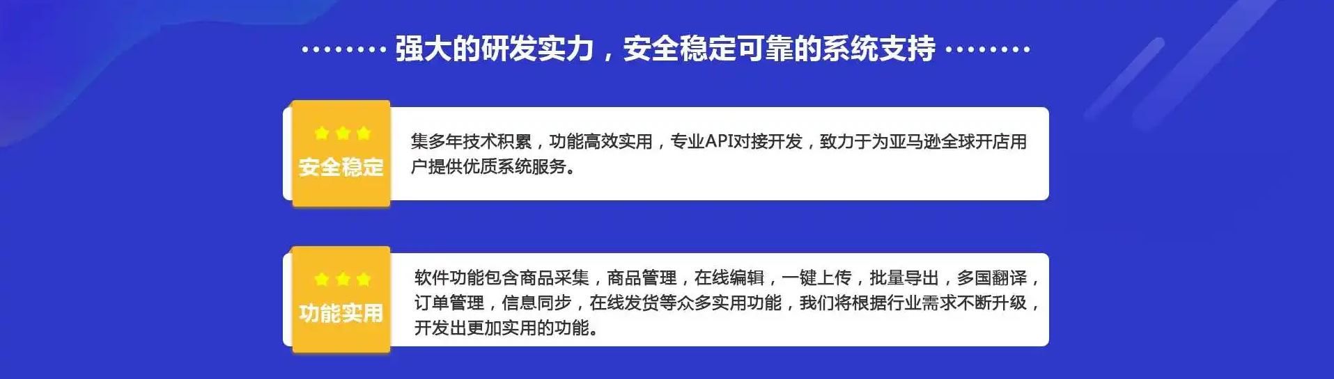 已对接亚马逊、ebay、速卖通等主流电商平台,实现一个系统管理多平台多店铺。